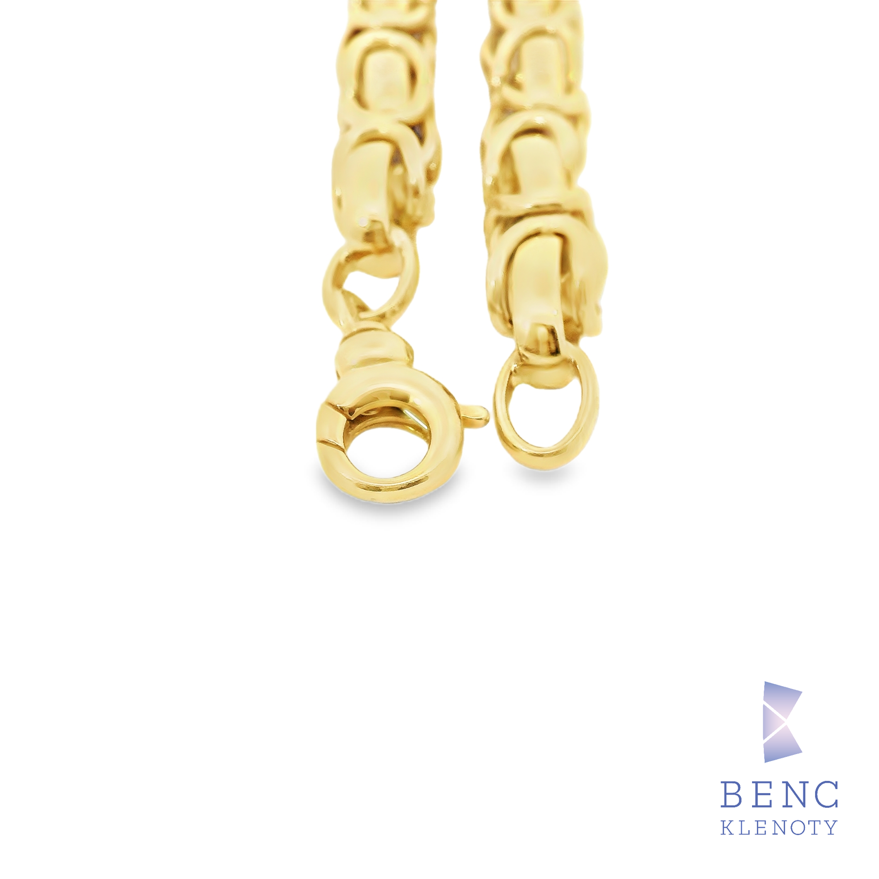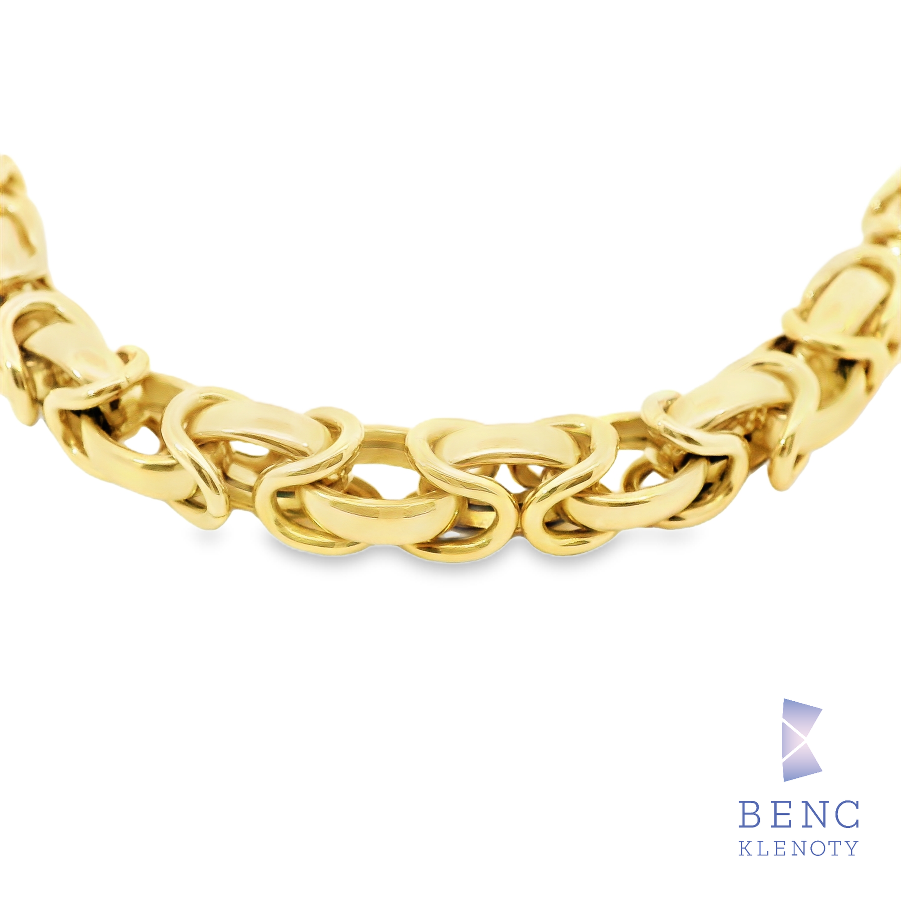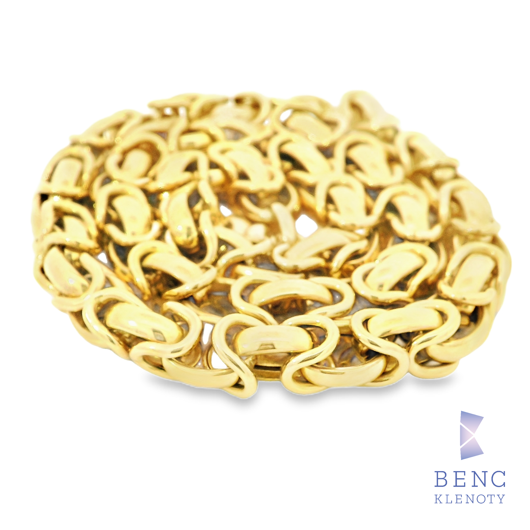 Elegantní nárdelník s královskou vazbou z polomasivního 14k zlata zaujme svým bohatým a nadčasovým vzhledem. Precizně propracovaný vzor působí luxusně, ale přitom jemně — ideální pro každodenní nošení i výjimečné příležitosti.