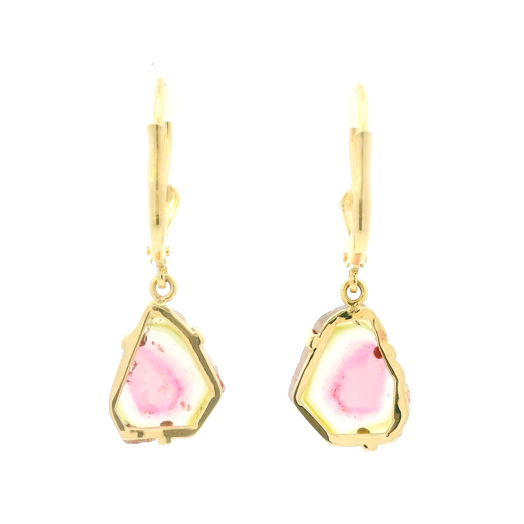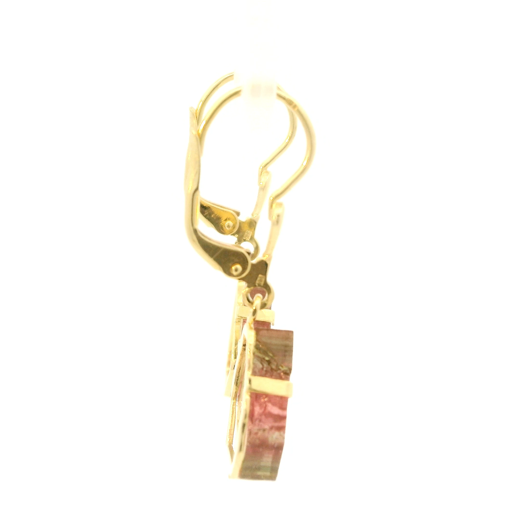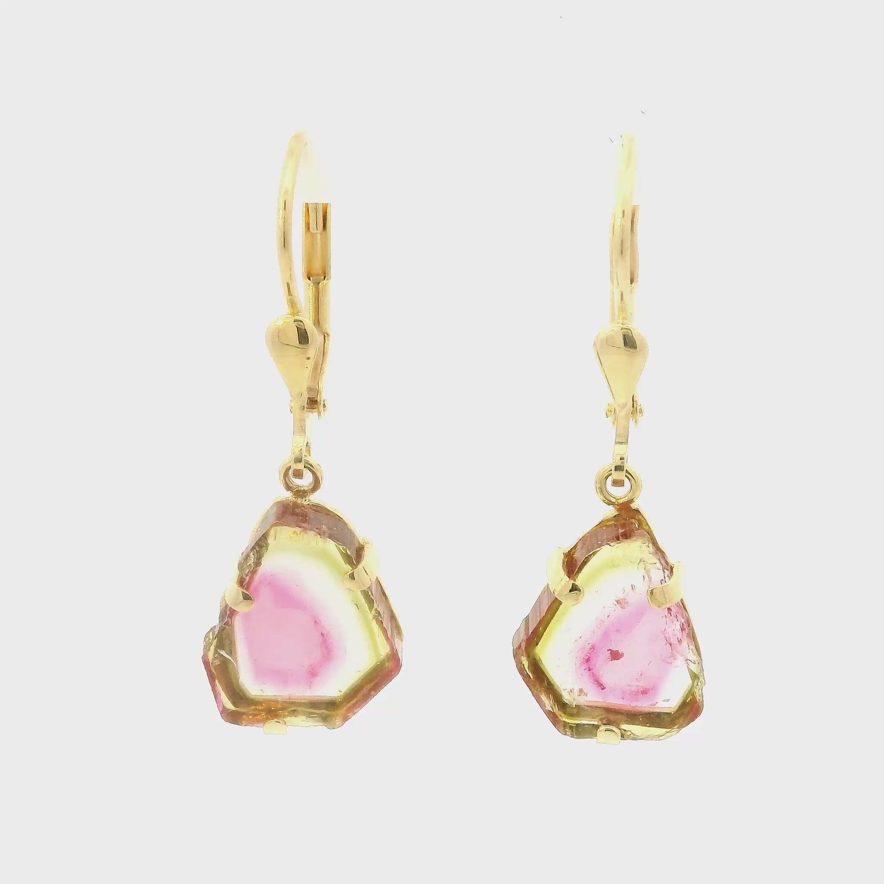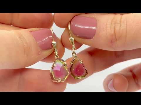 Tyto elegantní náušnice z přírodních melounových turmalínů zaujmou svou hravou barevností a jemným designem.