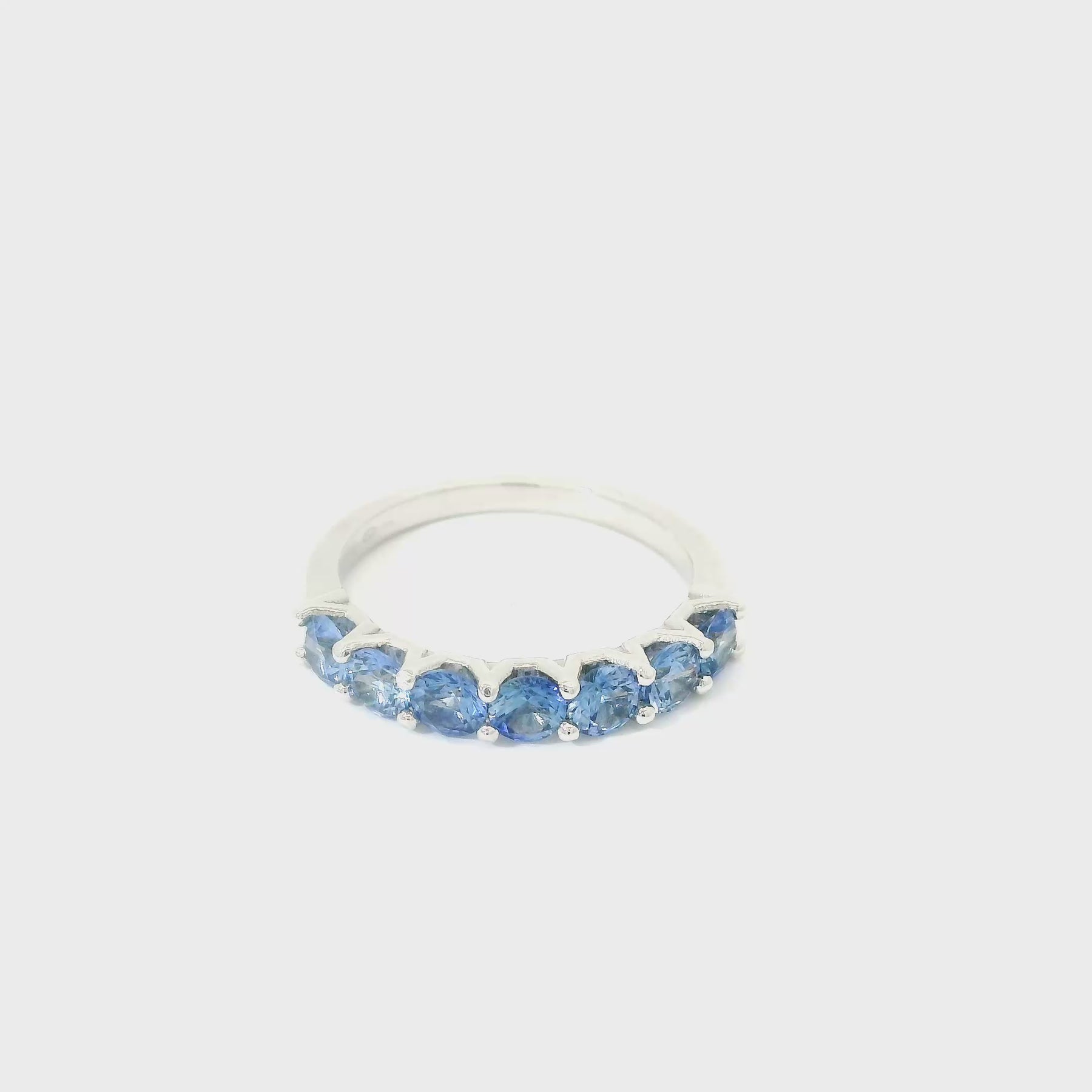 Tento elegantní prsten z bílého zlata s modrými safíry zaujme svou nadčasovou krásou a decentním luxusem.