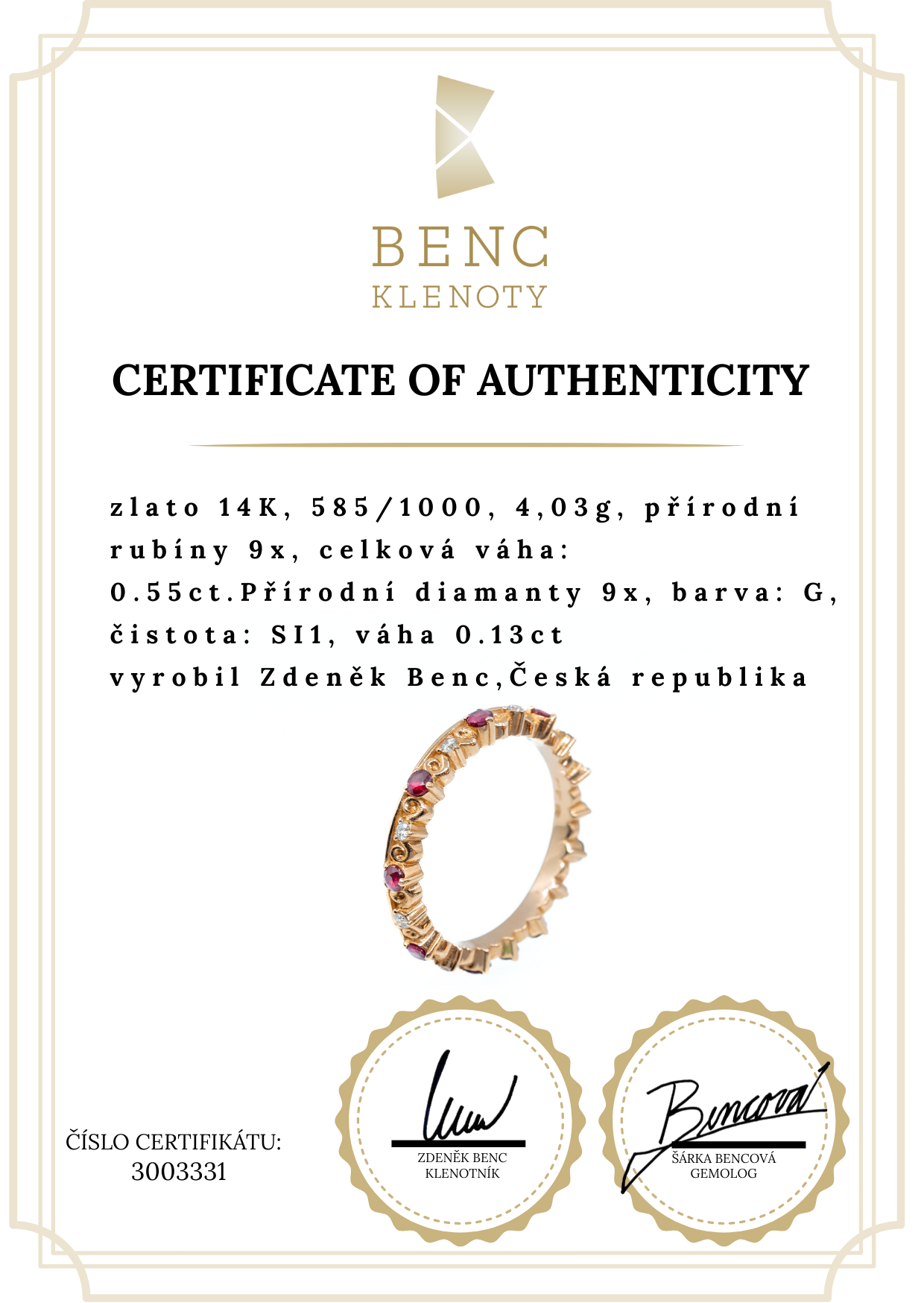 | MATERIÁL: | zlato 14K, 585/1000 |