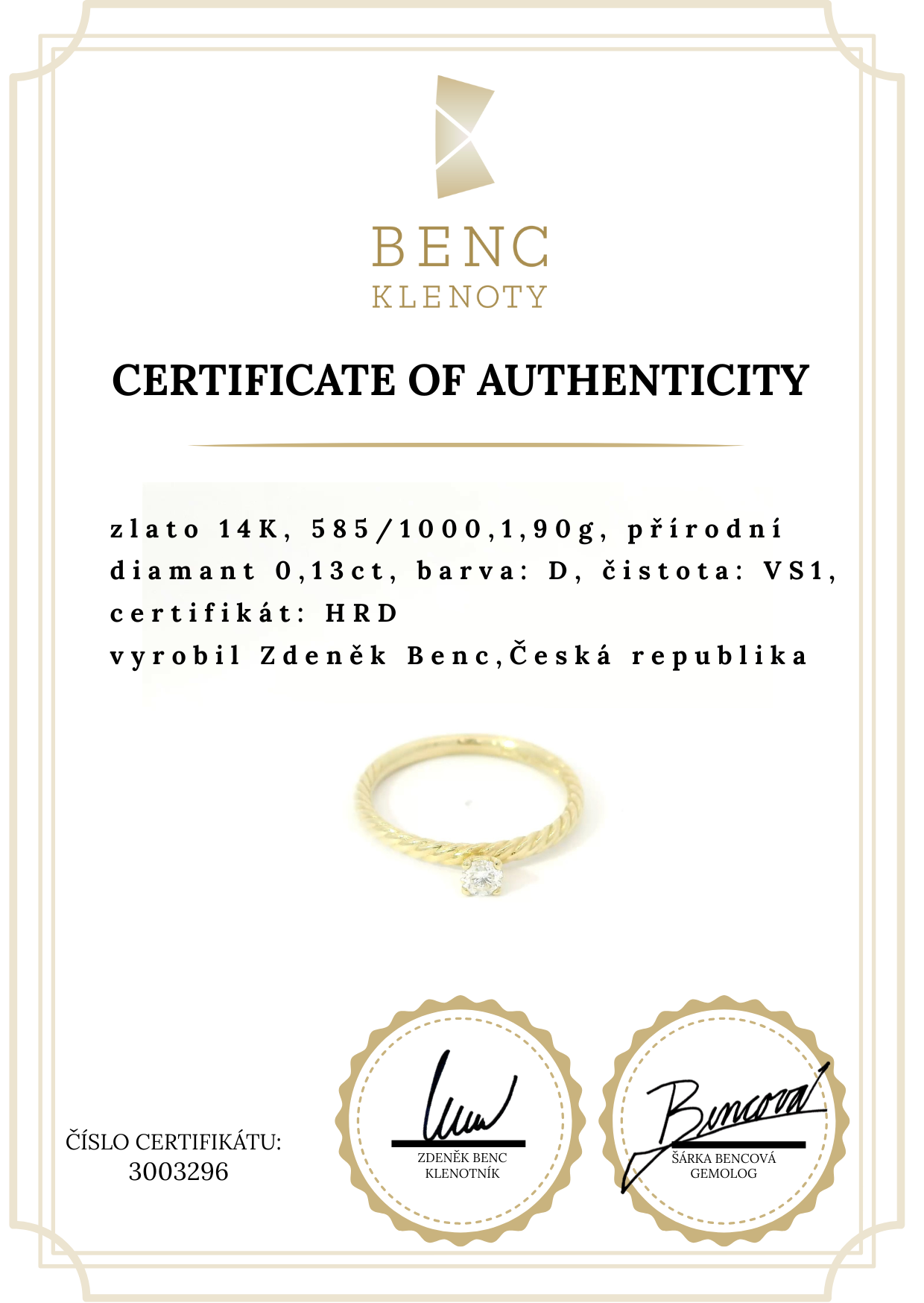 | MATERIÁL: | zlato 14K, 585/1000 |