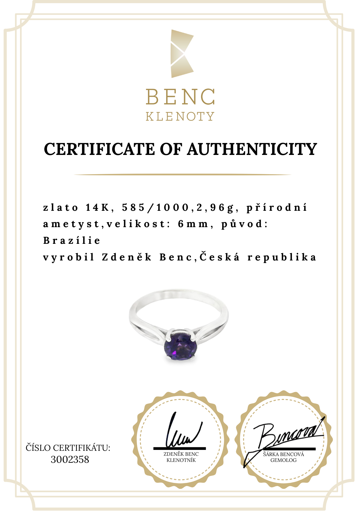 Objevte kouzlo tohoto elegantního zlatého prstenu, jehož střed zdobí nádherný fialový ametyst. Díky čistému designu a lesklé povrchové úpravě je tento prsten ideální doplněk pro každou příležitost – ať už se chystáte na večírek, nebo chcete dodat svému každodennímu stylu špetku sofistikovanosti.