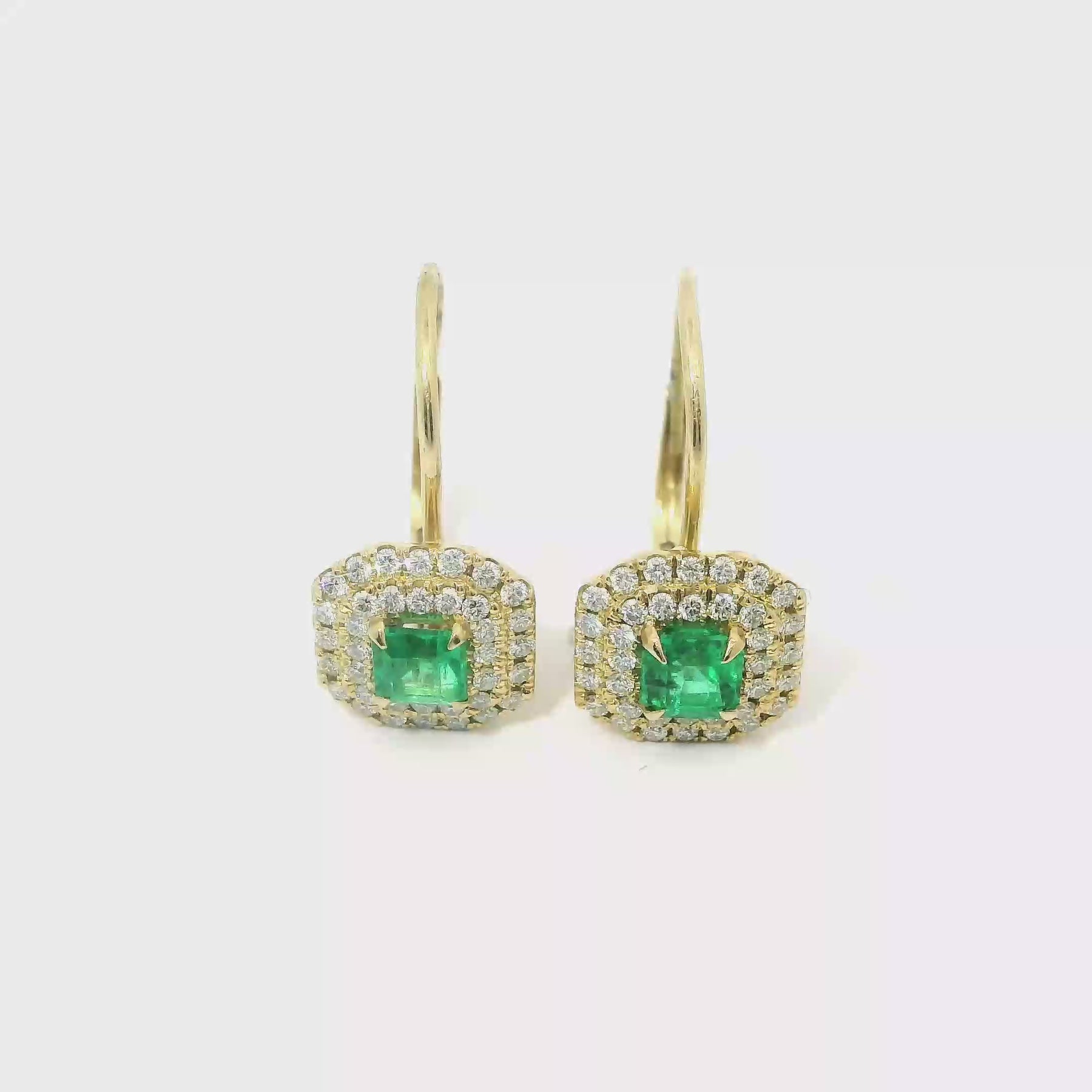 ✨ Klasická elegance: Zlaté smaragdové náušnice s výbrusem Emerald Cut a diamanty