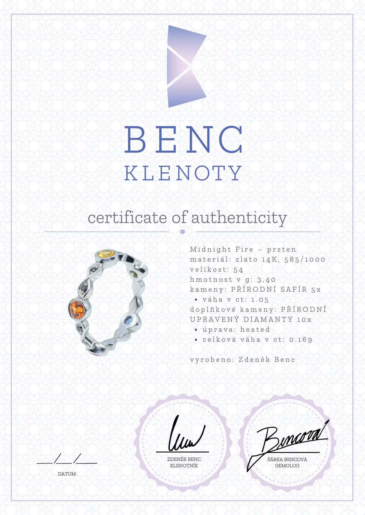 | doplňkové kameny: | přírodní upravený diamant 10x, váha: 0,169 ct |